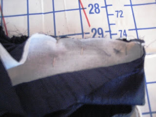 Now, all you have to do is hem. Remember that you have a 4" hem allowance on your pattern. So turn up four inches, press and pin. Try it on to check length. Then hem by hand or by using a blind stitch on your machine. (There's a great video tutorial for that here.)