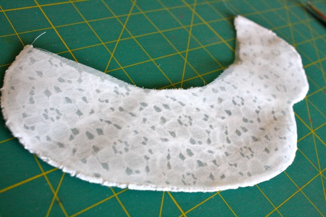 I bought 1/2 yard of very sheer cotton organdy to cut the under collars out of. I looked for something relatively stiff, that could stand in for the role of interfacing. Silk organza would work well too. I just sewed the collar as usual (see my tutorial here) and trimmed the seam allowances down to a scant 1/8". When pressing, I made sure that the organdy was rolled to the underside of the collar.